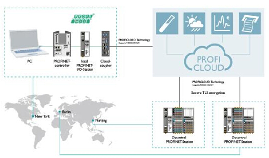 菲尼克斯电气的最新创新产品“PROFICLOUD”,即为该趋势下诞生的重要技术之一。它使得用户可以通过“云”来访问PROFINET现场总线系统。分散的网络设备与“云”之间进行数据通讯,通过安装在本地PROFINET网络的云耦合器可以访问这些数据。借助云技术,通过PROFINET网络用户可以直接地自动操作各种任务;以最小的工作量和最简易的方式,使远程控制得以实现;也使得更加高效利用位于不同地方的共享资源成为可能。将IT技术融合进自动化系统也是目前全球业界热议的工业4.0的核心话题。