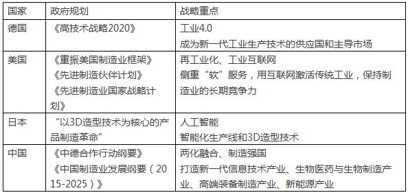 四个全球最重要的制造业强国同时推出自己的工业4.0规划,表明全球制造业的发展正处于进入新时代的十字路口,各国正在激烈争夺下个时代的领导地位。大国间从政府层面对全球制造格局展开主动竞争,对正处于困局之中的中国制造业考验尤甚。