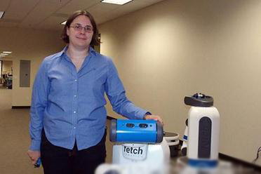 Fetch Robotics创始人兼CEO(首席执行官)Melonne Wise(图片3)介绍说,配备机械臂的Fetch的特点是,“能一边躲避障碍物一边自律移动”。以前,配备机械臂的机器人主要是汽车焊接用机器人等固定式产品。而Fetch配备了激光传感器和摄像头,能检测前进方向上的障碍物,并避开障碍物到达目的地。