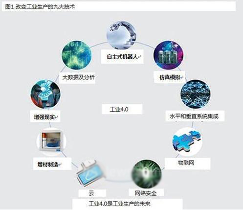 波士顿咨询公司发布报告介绍了工业4.0时代的九大技术趋势,并探讨其潜在的技术和经济效益,为制造商和生产设备供应商提供信息。这九大技术进步已应用于制造业,而随着工业4.0的到来,它们将改变生产方式:独立和优化的单元将完全整合为自动化的生产流程,改变供应商、生产商和客户之间的传统关系,也改变了人和机器之间的关系。(图2)