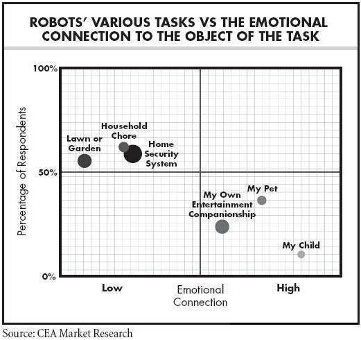 CEA消费者调查2013及2014年的结果显示,只要是相对非个人的服务,大部分消费者都愿意接受机器的辅助。而当服务越个人化或越重要,如看护小孩,消费者对机器的接受度就越低。