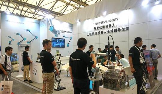 优傲协作机器人在第十二届上海国际汽车制造技术与装备及材料展览会(AMTS)上展示核心产品:UR3、UR5、UR10六轴串联协作机器人