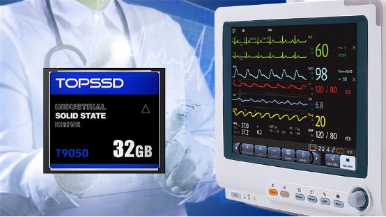 TOPSSD天硕T9050系列宽温工业级CF卡简称天硕T9050CF卡,目前已广泛应用于各医疗设备中。该卡采用SLC NAND FLASH闪存芯片,芯片技术通过了美国军规MLD-STD-810G标准认证,内部嵌入了高级ECC引擎与均衡读写功能,能够支持UDMA-7传输标准,可自动识别True-IDE工作模式。从技术整体性能上看,该卡已达到行业同类产品中的最高水准,具有最高的可靠性及耐用性,能够在恶劣的环境中稳定运行,并保持最低敏感度和最大数据完整性。